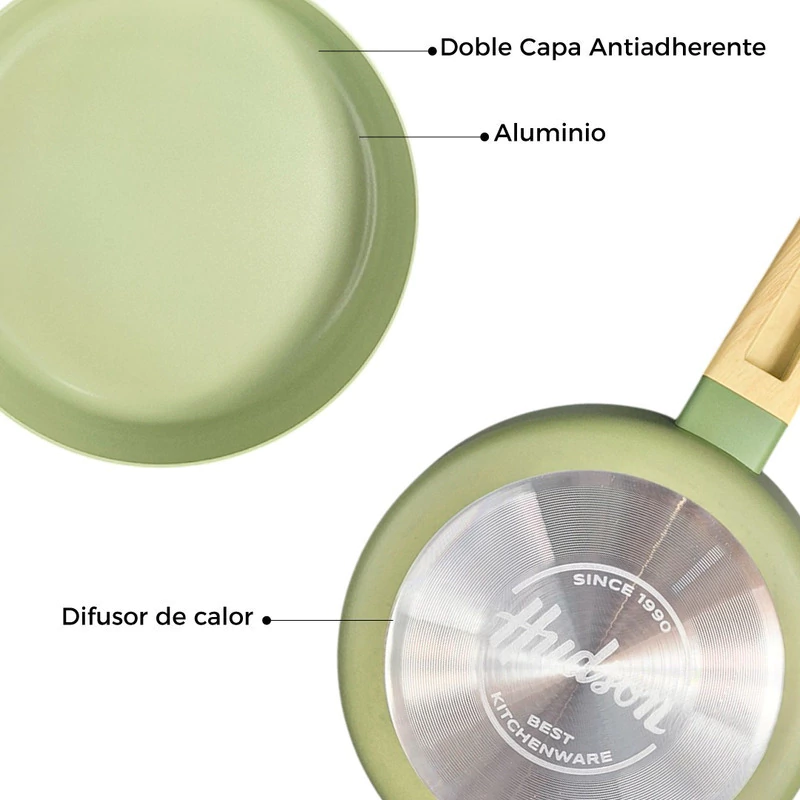 Doble capa de revestimiento antiadherente color verde.