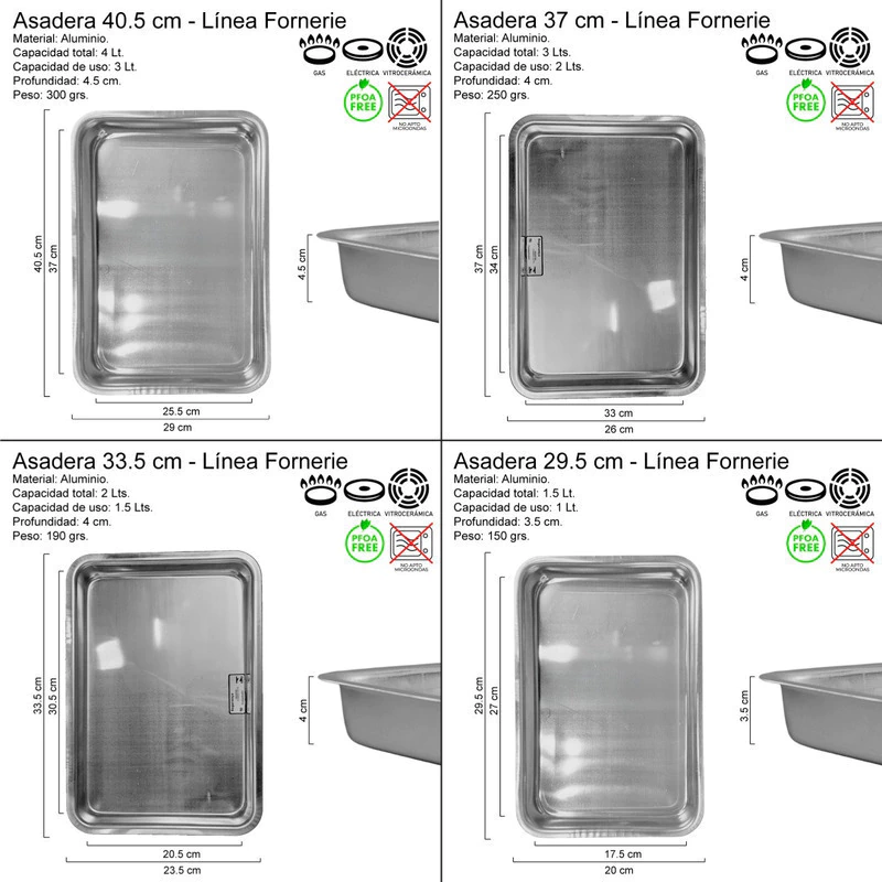 1- Set 4 asaderas (29cm, 33cm, 37cm y 40cm)